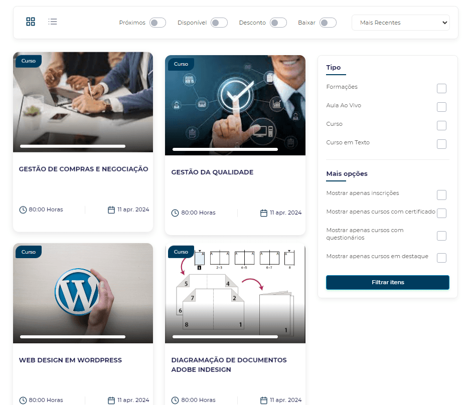Crie a estrutura que melhor se adequa a sua instituição, em uma plataforma totalmente whitelabel e alcance uma gestão de conhecimento completamente integrada.